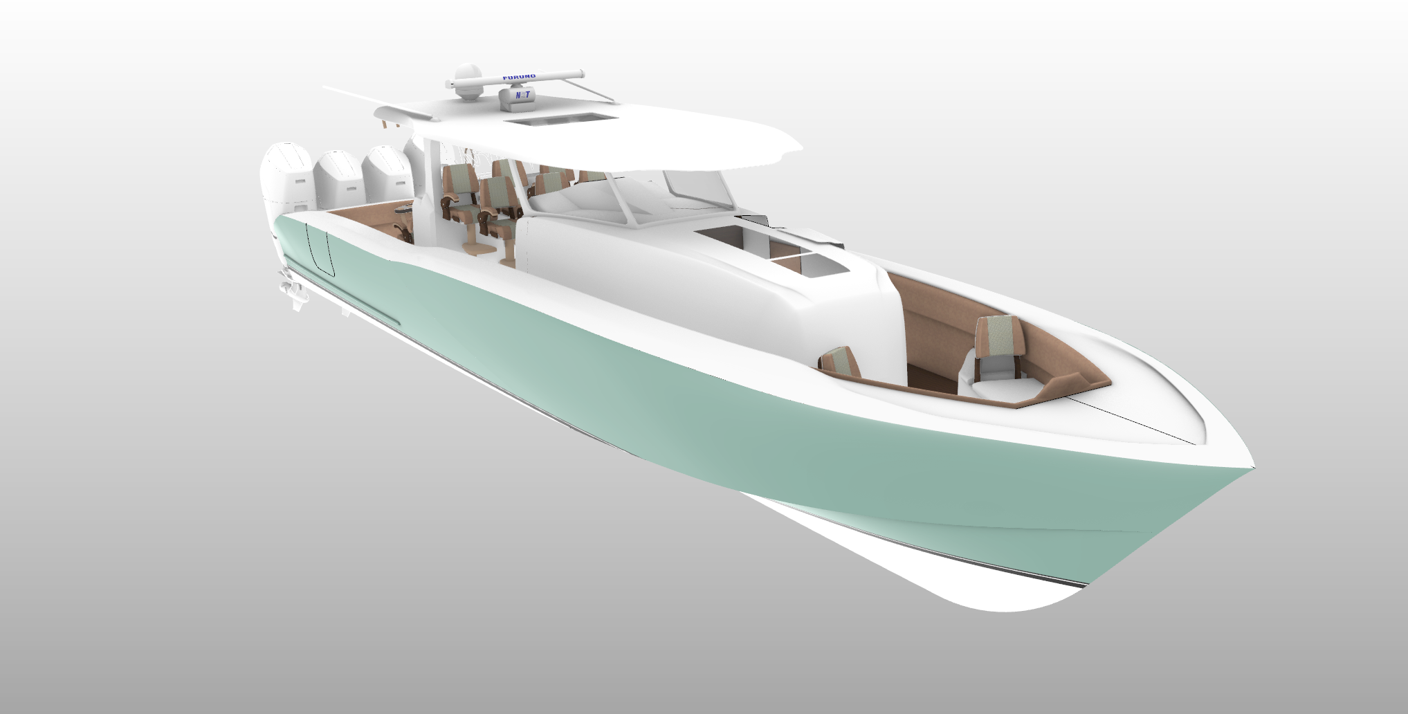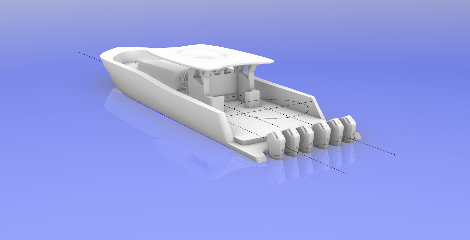 Had a small hiccup a few months back. My computer crashed and I lost nearly every design and any progress I made on the L-70 Carolina. Since then I’ve been able to recover a few of my designs from back at the landing school as well as recreating the Carolina. Truly a blessing being able to remake it, I have changed several details and key features of the variation I have uploaded pictures of. This is the L-75 Carolina LX, as the name states I have bumped the LOA to 75′ and a BOA of 20′. This variation is an open transom with a rear platform, with plans on a rotating lounge/fishing platform, focusing more on luxury rather than fishing. With Hydrostatic calcs and estimates completed, the WOT is sitting at 60kts, not as intense as its precursor but still more than enough speed to put you back in one of the 7 Release Marine helm chairs in the cockpit. If anyone is leaning more on the fishing standpoint, there will also be the L-75 Carolina OFX. This variation will be closed transom with the engines mounted straight to the transom, since there will be no rotating lounge this frees up a lot more aft space for fishing as well as storage. The OFX will also feature a tower to help with easily backing down and maintaining your position. Sorry for the radio silence in case there was anyone looking at this but I will make sure to keep this up to date in case anyone actually is.