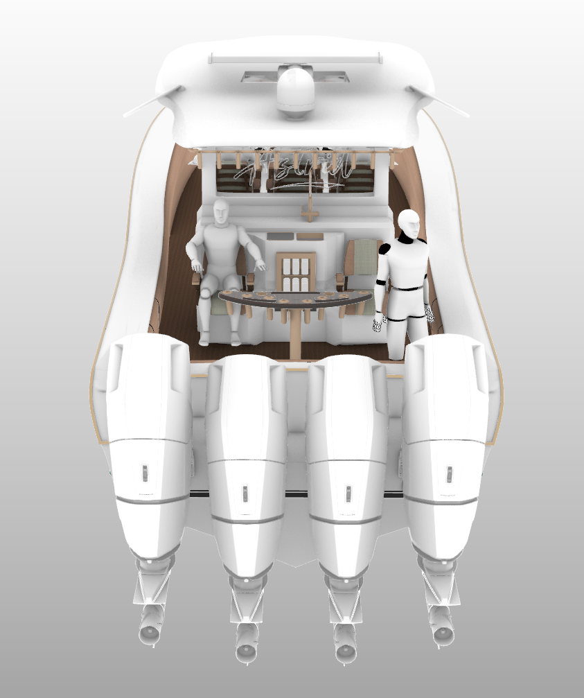 power: Quad Mercury Verado v12 600 outboard engines (2,400hp)
